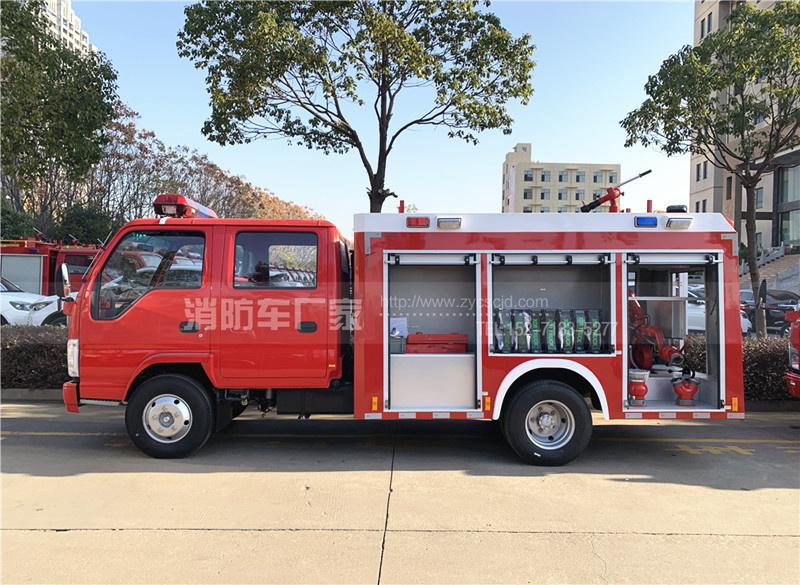 五十鈴3噸水罐消防車(chē),五十鈴120馬力發(fā)動(dòng)機(jī),底盤(pán)型號(hào):QL1070BUKWY,發(fā)動(dòng)機(jī)型號(hào):4HK1CN6LB,7.00R16輪胎,紅色雙排駕駛室,軸距:3815mm。罐體容積:3噸水,配備上海茸申CB10/20消防泵,成都威斯特PS20消防炮,紅色警燈,整車(chē)消防紅。水射程:≥50m。