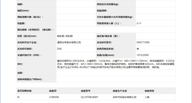 國六五十鈴2.5噸泡沫消防車參數(shù)表 |