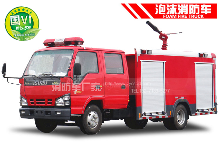 五十鈴88KW國五發(fā)動機,軸距:3815mm,配備CB10/20消防泵,PS20消防炮,水射程:≥50m。