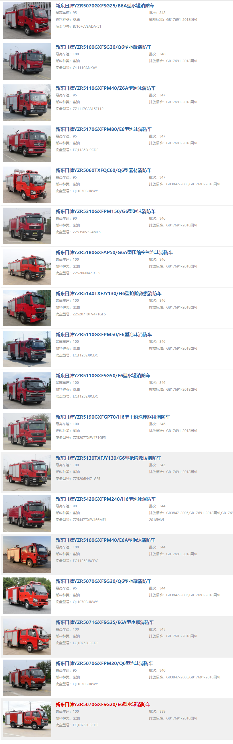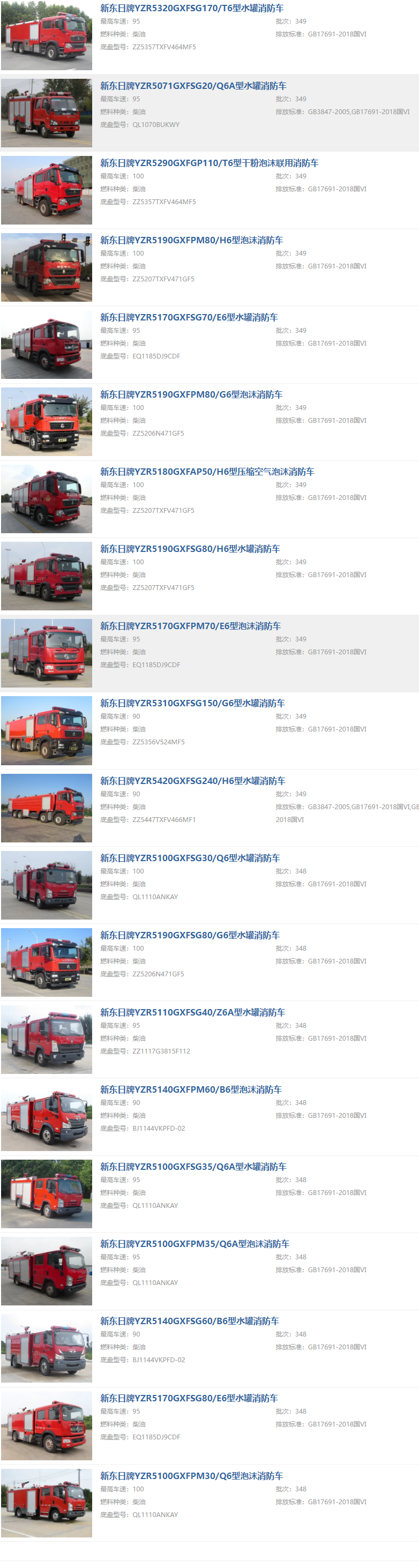 公司車型很齊全,從2-25噸,所有噸位的消防車都有。質(zhì)量相當不錯。