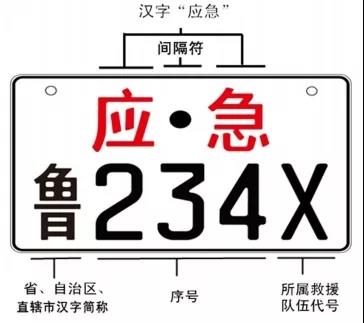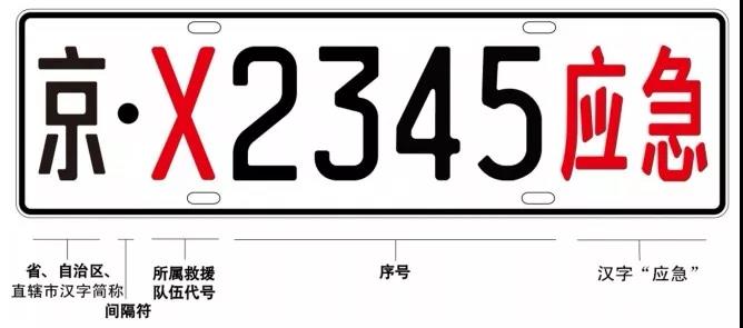 應(yīng)急救援專用號牌分為汽車號牌和摩托車號牌兩種,汽車號牌每副兩只,分別懸掛在車輛前后部;摩托車號牌為單只,懸掛在車輛后部。